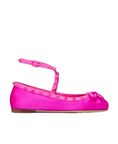 Rockstud Satin Ballerinas With Tone-on-tone Studs In Pink
