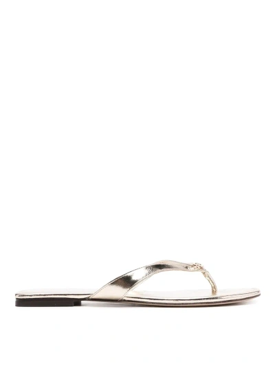 Flat Leather Flip-flops In Gold