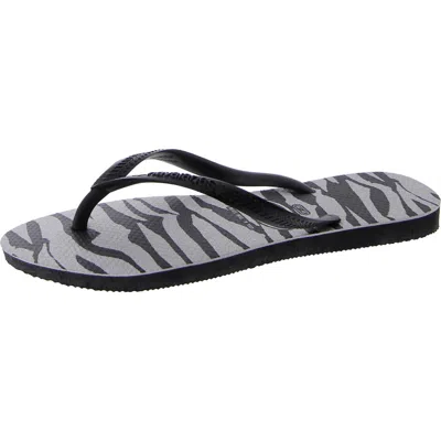 Womens Black Slim Zebra-print Rubber Flip-flops