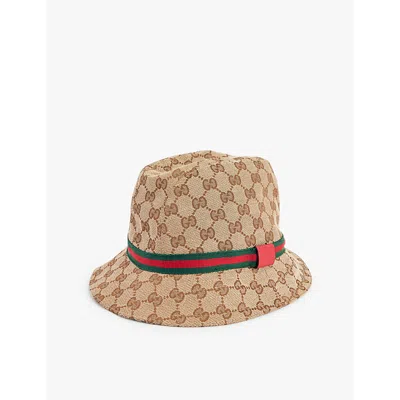 Kids' Monogram-print Wide-brim Woven Fedora Hat 10-12 Years In Dark Brown/ Red