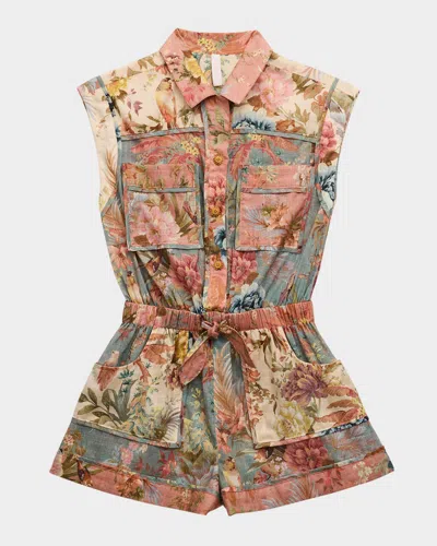 Kids' Girl's Tallow Floral-printed Playsuit In Spliced Spli