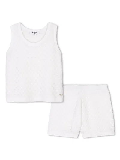 Kids' Off-white Short-sleeved Dress And Culotte Set