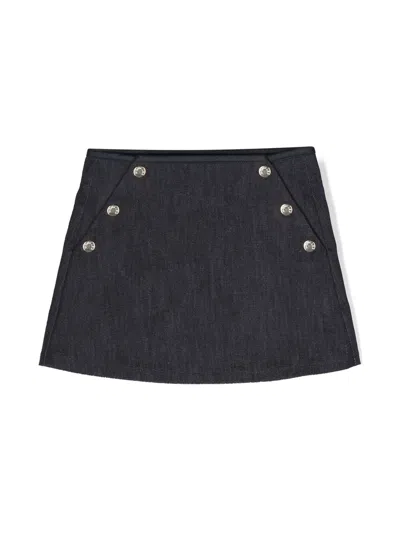 Kids' Blue Skirt With Logo Patch And Logoed Buttons In Cotton Girl In Black