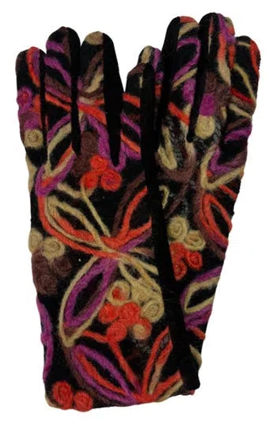 Flower Print Knit Touchscreen Compatible Gloves In Black