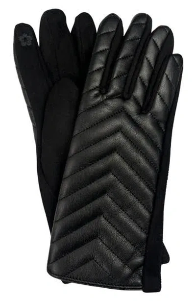 Quilted Faux Leather Gloves In Black