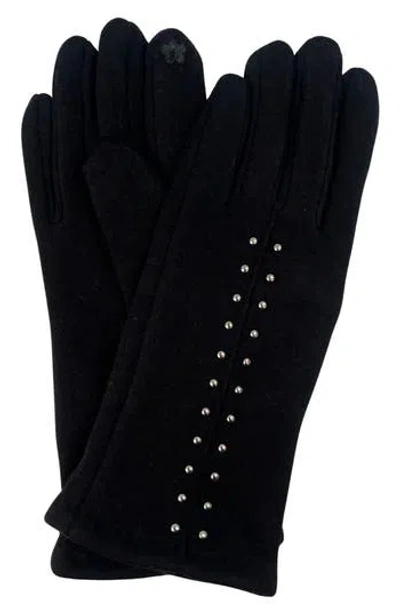 Studded Faux Leather Touchscreen Compatible Gloves In Black