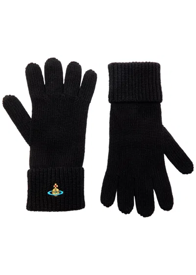 Black Gloves With Orb Logo Embroidered On The Front In Wool Blend Unisex