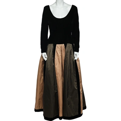 Pre-owned Colorblock Silk & Velvet Long Sleeve Evening Gown L In Multicolor