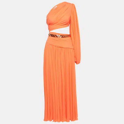 Pre-owned Orange Crepe Pleated One Shoulder Jafari Gown Xs