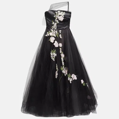Pre-owned Black Label Floral Embellished Tulle Gown M