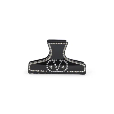 Womens Black Logo-plaque Silver-toned Metal Hair Clips Set Of Two