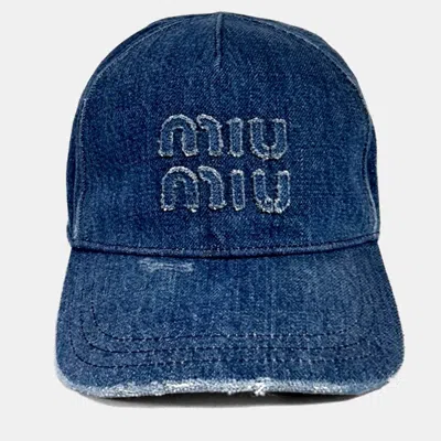 Pre-owned Blue Fur Trim Wool Knit Beanie