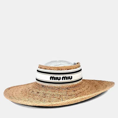 Pre-owned Beige Gg Appliqued Raffia Hat M In Sand