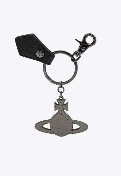 Hammered Metal Orb Keychain In Black