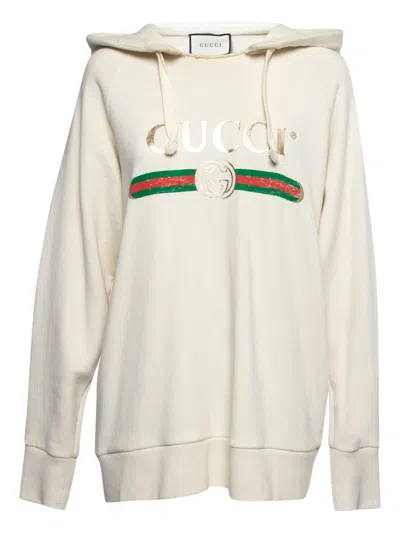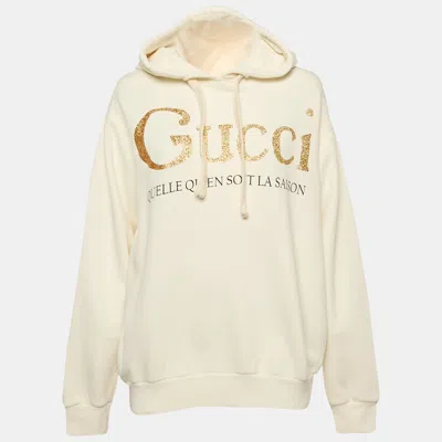 Pre-owned Cream Logo Print Embroidered Cotton Knit Hoodie Xs