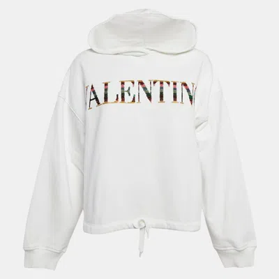 Pre-owned White Logo Sequin Embellished Cotton Knit Hoodie M