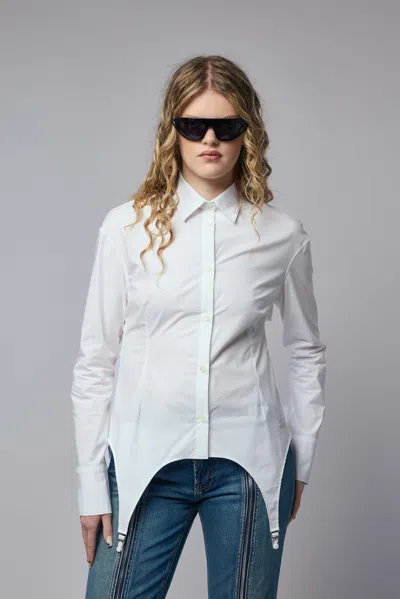 White Off-shoulder Dress With Tight Waist In Viscose Woman In Multicolor