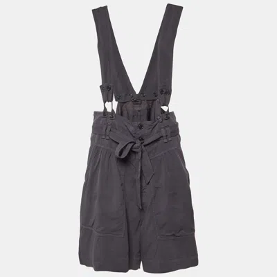 Pre-owned Navy Blue Lyocell Blend High Waisted Suspender Shorts L