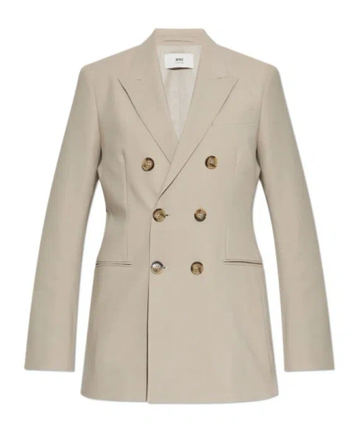Ami Paris Ivory Wool Oversize Blazer In Neutral