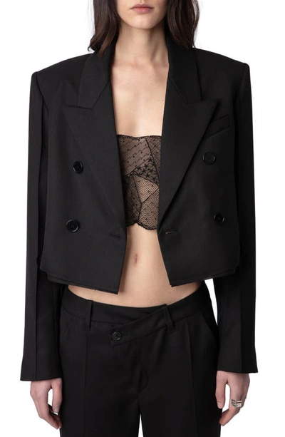 Double-breasted Faille-trimmed Grain De Poudre Wool Blazer In Black