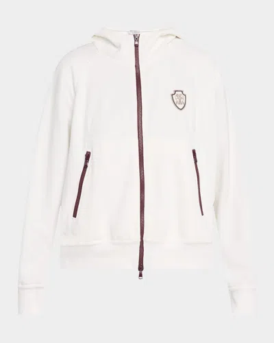Logo Crest Piquet Fleece Hooded Jacket In White