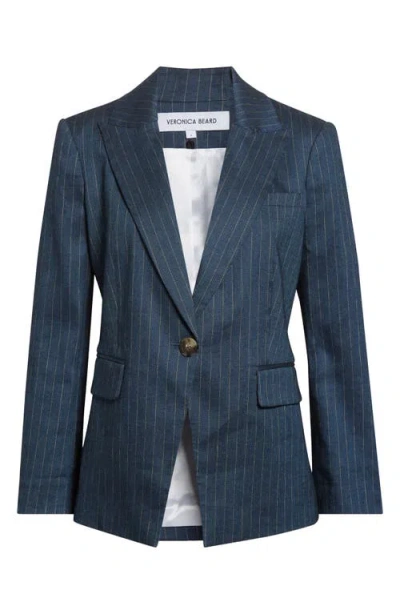 Womens Navy Blue Striped Rhinestone-embellished Sleeveless Stretch Wool-blend Jacket
