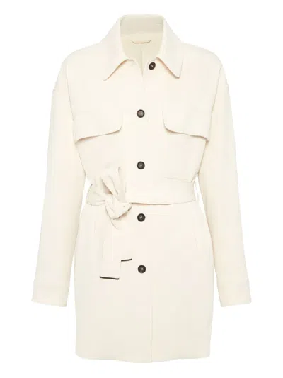 Collared Neck Jacket Buttoned Cuffs In Beige