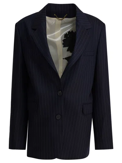 Single-breasted Pinstripe Blazer Jacket In Blue