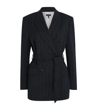 Pinstripe Double-breasted Blazer In Blue