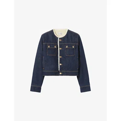 Womens Brut Denim Round-neck Chest-pocket Denim Jacket In Blue