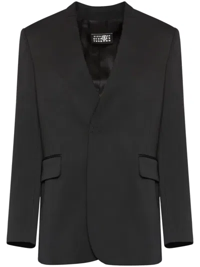 Round Collar Buttons Dropped Shoulder Loose Fit Jacket In Black