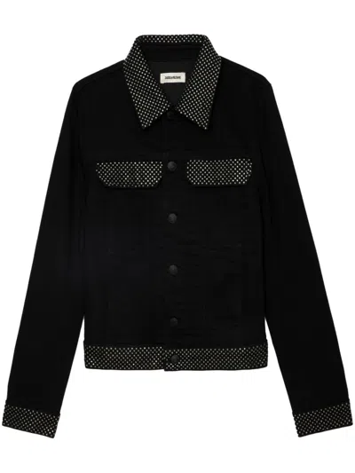 Oversized Double-breasted Blazer With Rhinestones In Black