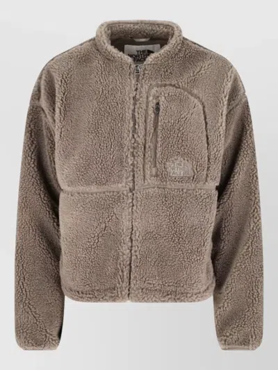 Fleece Jacket With High Collar And Pocket In Brown
