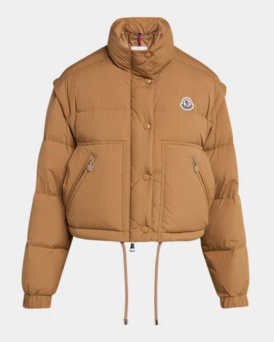 Selle Puffer Jacket With Zip-off Sleeves In Medium Beige
