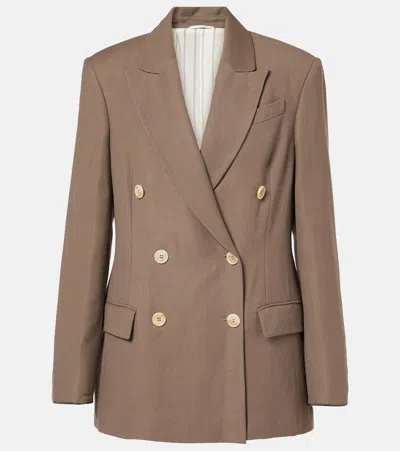 Heritage Herringbone-pattern Linen-blend Blazer Jacket In Brown