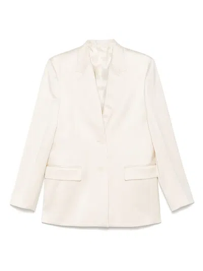 White Silk Sablé Crêpe Blazer With Monili In Blue