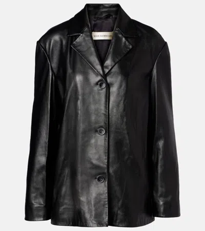 Monili-neck Smooth Glove Leather Bomber Jacket In Burgundy