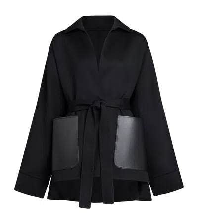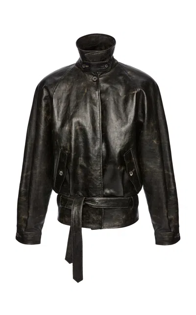 Leather Blazer With Notch Lapel And Tie Detail In Black
