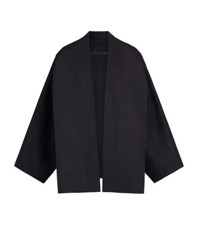 Double-breasted Virgin Wool-cotton Blazer In Black