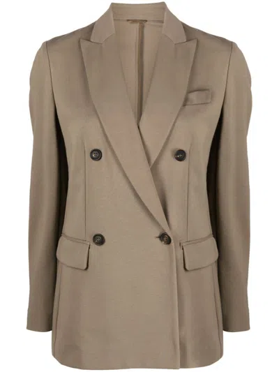 Double-breasted Wool Blazer In Brown