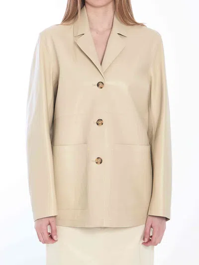 Toteme Women Single-breasted Leather Jacket In Cream