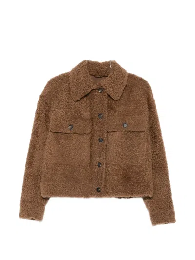 Nappa Leather Jacket Long Sleeves Front Pocket In Brown