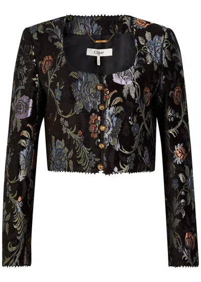 Chloe Floral-brocade Woven Cropped Jacket In Black