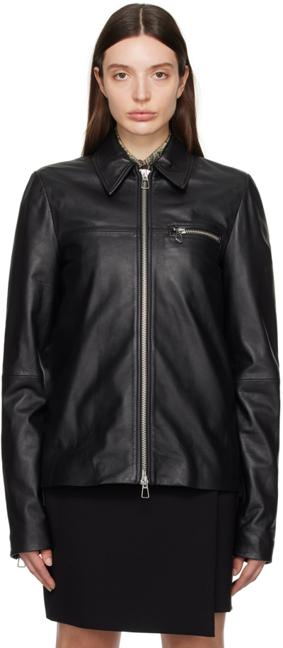 Zip Up Bomber Jacket In Faux Leather In Black