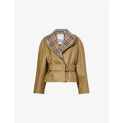 Womens Lichen Beige Carlton Shawl-lapel Cotton Jacket In Brown