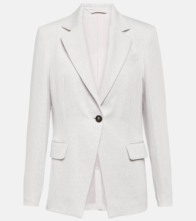Brown Jacket With Notched Revers And Front Closure With Bow In Linen Blend Woman