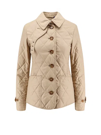 Beige Single-breasted Down Jacket With Quilted Texture In Stretch Fabric Woman In Brown