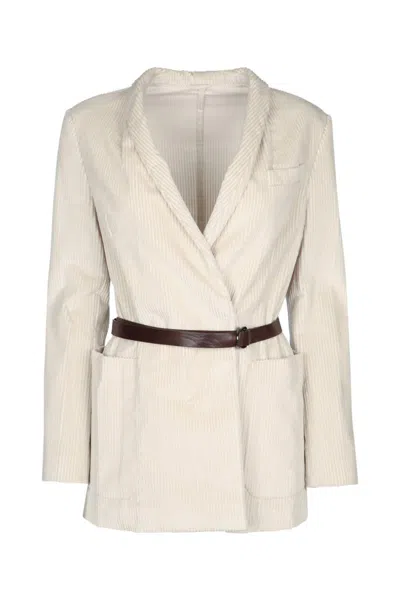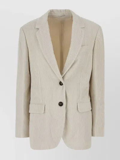 Blazer Contrast Trim Front Pockets Long Sleeves In Neutral