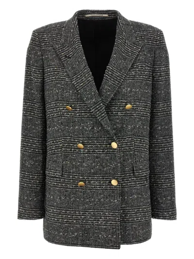 Mcqueen Silver Tattoo Peak Shoulder Blazer In Black