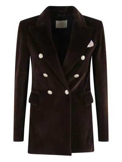 Velvet Double-breasted Jacket With Peak Lapels In Brown